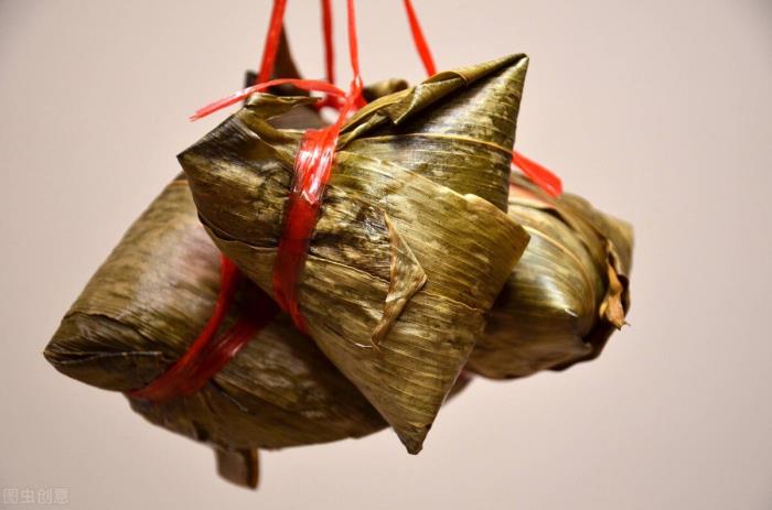 在民间故事中,还有驱赶蛟龙的寓意,用蛟龙最怕的艾叶和五色丝线捆绑在一起,就可以驱赶蛟龙了,这也是粽子形状的发展。