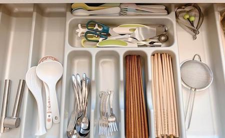 久放无用的调味料、很脏还不舍得掉的抹布就丢掉了吧!选择留下够用碗碟放消毒柜内,其余的找个柜子收起来。保持桌面除必要的空余一物就对了。