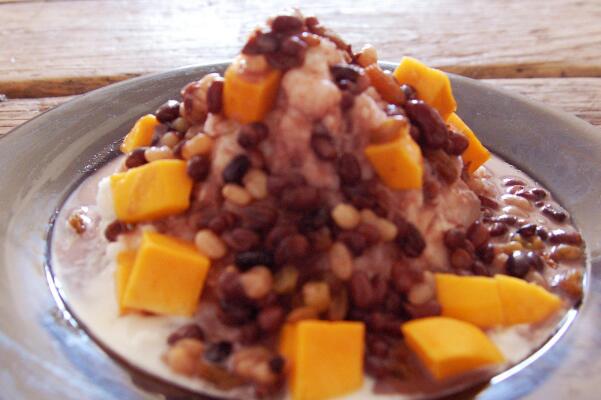 蜜豆并不像黄豆以及黑豆等那样是豆子的一个品种,蜜豆是一道甜品美食,主要的材料是红豆,再添加白糖或者蜂蜜等作料,就能制作一道美味的甜品了。蜜豆在夏季的时候十分受欢迎,因为蜜豆可以放在冰箱里面冷藏,冷藏之后蜜豆风味更佳独特,清凉解暑,路边很多饮品店都能见到这种美食。最简单的蜜豆加点糖或蜂蜜就可以,吃起来更佳香甜,根据个人口味,还能在蜜豆中添加水果沙拉以及豆花等食物,也可以添加一点酸奶,这样使得蜜豆的味道更加丰富。