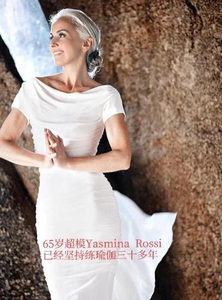 法国65岁的祖母级超模奶奶Yasmina Rossi从30岁开始坚持练瑜伽,至今已有三十多年了。她的身材保养得很好,脸上的皱纹明显比同龄人少很多,看起来就像三十多岁的样子,创下了瑜伽冻龄的神话。