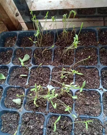 同事分享了一些洋甘菊种子给我,洒到盆里3天就发芽,苗长很快很长,又细又弱,都倒了,可能是光照弱了,但其它种子没有这样。这种花估计不适合盆栽,准备把剩下的种到楼上的土里,到时看效果如何。
