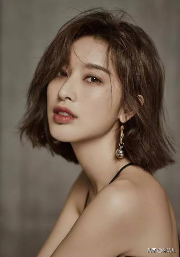 这里就有一个重点,如果你眉眼部分的五官比较精致的话,比如眼睛大、鼻梁高挺同时鼻头又圆润秀气的话,剪短发会更容易放大五官优势。比如近期人气飙升的梁洁,她的短发造型酷飒十足,也是得益于好看的眉眼和鼻子。