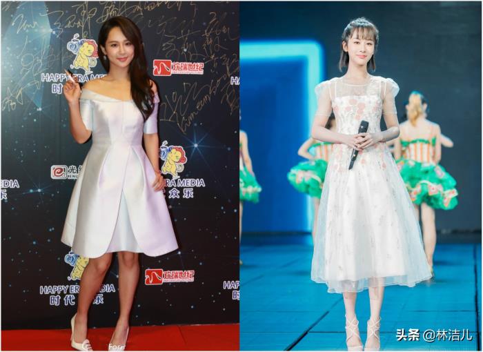 尤其是身高不够的集美,如果头发过长,很容易给人一种头重脚轻的感觉,建议选择短发或中长发,对比一下沈月短发与长发的造型,是不是长发感觉略显老气,而短发反而凸显了她的青春活力。