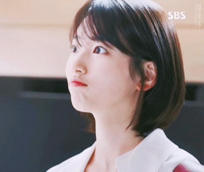 但其实,这个定律也不绝对,比如倪妮的耳朵长得过高,拉长了耳垂到下巴的距离,可换上“下巴短发”却能让她可盐可甜。
