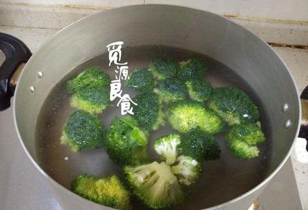 1、锅中放入少量的清水,放入我们刚刚准备好的西蓝花,一小朵即可,蔬菜焯水大多都是冷水下锅,大火煮沸,将西蓝花煮熟即可;