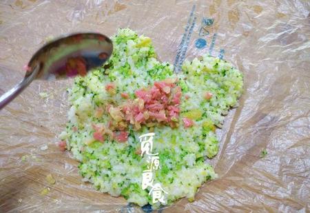将饭团揉搓成鸡蛋大小,2-3个饭团差不多就是一碗米饭,红薯添加米饭之中,增加了米饭的粘性,西蓝花碎增加了清香、榨菜和火腿肠让饭团更加的好吃,这样的早餐是不是很简单,您也可以试试哦;