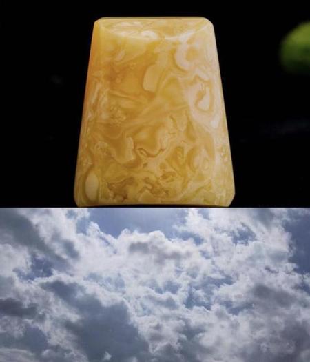 蜜蜡是上古时候树脂经过长时间的滴落在同一地点形成的,所以注定了他的纹路是堆积状,或者有摊出去的感觉,而且是没有任何规律可寻的,用你家的烛台下方蜡油或者两种浓稠的液体交汇的场景进行脑补。而在合成二代蜜蜡的时候,不会有人去模拟这个滴落堆积的过程,太费时间了。一般都会选择直接挤压,或者加热后用大木棍子直接搅拌。所以形成的纹路必定会整成一定规律………用捏不同颜色的橡皮泥或者咖啡里加奶后进行搅拌的场景脑补……