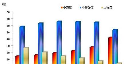 如下图所示,在20-29岁经常健身的人群中,从事大强度锻炼的比例不到30%