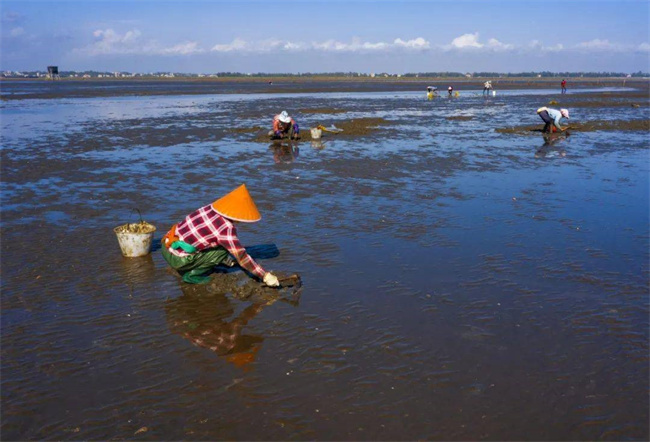 干潮适合赶海,干潮前后三小时内是最适合赶海的。干潮是指海水最低潮,这时候海水退的又快又远,一些贝壳、鱼虾、螃蟹等生活在浅水区的海洋生物行动较为迟缓,在干潮时就会被搁浅在沙滩上,人们可以趁此打捞和采集海鲜产品。赶海最好在大潮汛去最好,在每个月的初二或十六,能够有大收获。