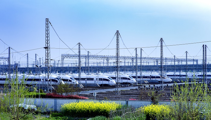 高速铁路接触网是沿铁路线上空架设的向电力机车供电的输电线路,高铁列车运行所仰赖的电流就是通过机车上端的接触网来输送的。