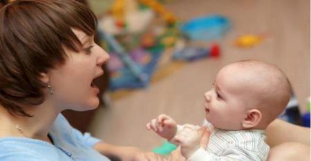 出生2个月时,婴儿对语言中包含的情绪就有所反应,3个月能发出喃喃之声。所以家长就要借此机会开始与宝宝沟通互动,让宝宝增加说的欲望。要在带孩子的日常生活中解读宝宝的“婴语”,比如困了、饿了、尿了的时候,宝宝都有哪些表现,如何妈妈在做这些护理的时候要跟宝宝也用喃喃细语说话。渐渐地,宝宝就会有意识说话。
