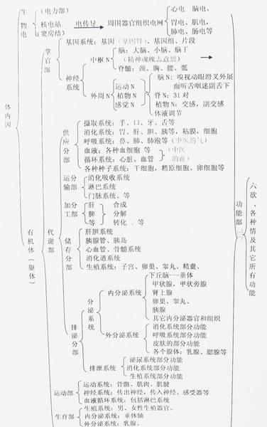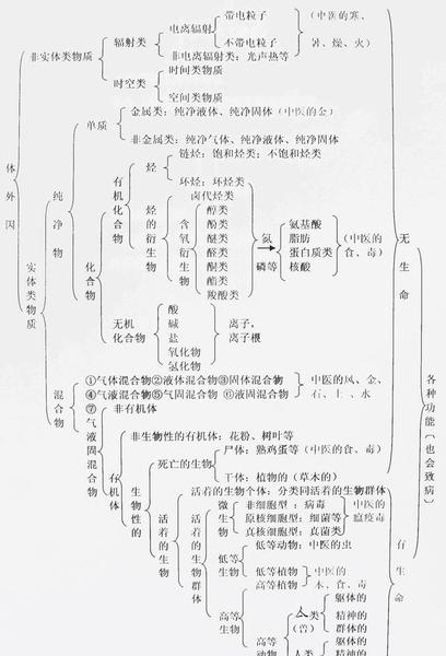 先说咳嗽,咳嗽是一种身体不正常的状态,是症状,因为正常状态下是不咳嗽的。只要一咳嗽,就说明气管或呼吸系统里有异常了,所以咳嗽是呼吸系统有异常的癥象,就得找引起咳嗽的原因。引起咳嗽的原因非常之多,教科书上只罗列了已知的和常见的原因,没有写不常见的和未知的,当然人们就不知道了。比如:SARS病毒感染也会引起咳嗽,在SARS没有被确诊之前的教科书里不可能会找到其踪影,不知道,不等于没有,作为教科书就不能不写,要把它们归类为“未知”的类别里面,将来出来了H100N100,也在考虑范围之内。所以我经过认真思考和整理,总结为两张示意简图,体内因和体外因。所有的病症都逃不出这里的内容,而且还为此造了一个汉字。
