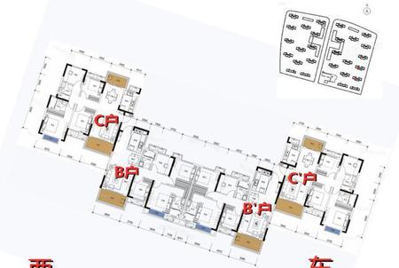 根据你提供的资料,各户型合成后,户型所在位置和楼体朝向大致是这样的。然后我们分析各个户型优缺点: