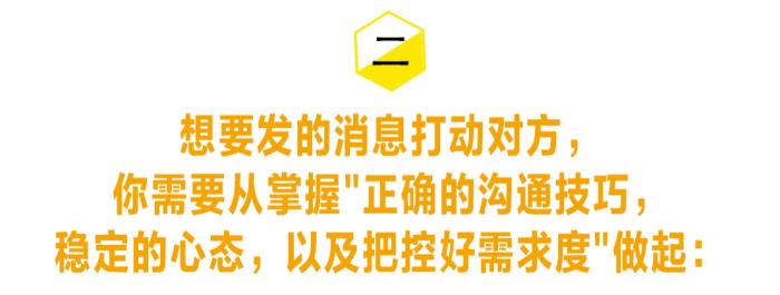 所以,把握好你的需求度,跟他发消息时,多站在他的角度去思考:如果你是他,你看到这样的消息,会不会有压力?能不能接受?想不想回复?