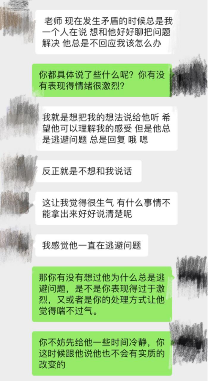 我有一个咨询者就是这样的,她一直想抓着对方说问题,但对方这时候就是不愿理跟她沟通。