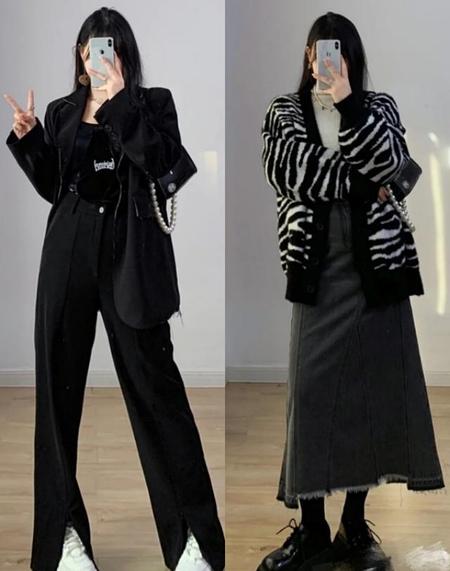 当然,如果,你不想因为上半身丰满而显得很性感,想要通过穿衣搭配来让自己看起来不那么丰满的话,可以参考下面搭配,内搭衫可以不那么修身,或者颜色选择深色更不容易显胸大