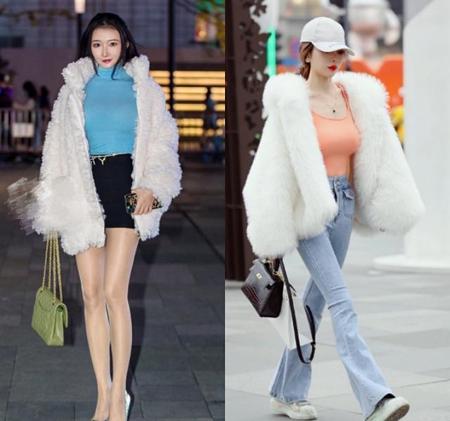 像现在天冷,里面穿一件修身打底衫,外面搭毛茸茸的厚外套,保暖又性感,即使穿的厚也不影响女人味。
