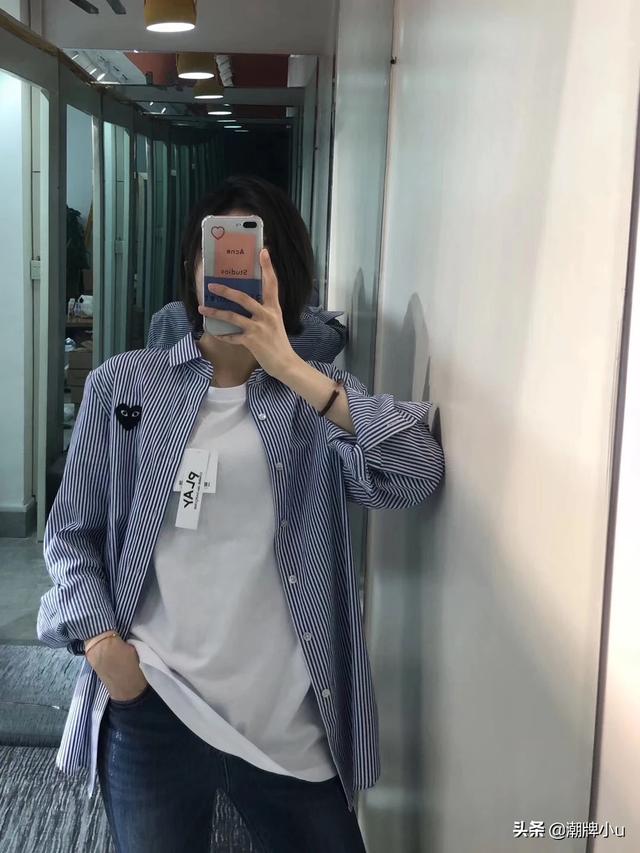 你还可以里边穿个连衣裙或者是短袖外面套个小开衫儿,上面不要扣扣子,这样也能遮挡一部分,很漂亮的哟。但是,袖子不要太紧,不然会显胸大。