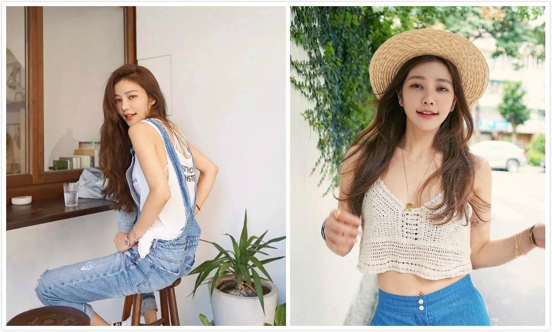 我们完全可以参考IU,以休闲风为主,局部以单个或一到两个的少女风单品点缀,这样的穿搭就很自然。