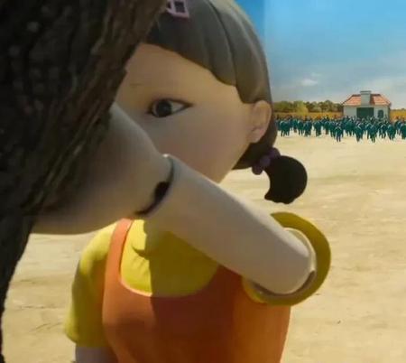 第一局游戏很简单,游戏名字叫123木头人,只需在规定的时间内,到达几十米外的区域就算过关,由于没有规则声明,刚进入游戏,所有人都朝线奔去,谁知在线对面的木头旁有个机器娃娃。机器娃娃的头可以360度旋转,当它转过来时,看到活动的玩家就会被无情的直接杀死。由于大家不知道规则,所以在第一局中,有过半的玩家被淘汰出局。算是一个很幼稚的游戏。