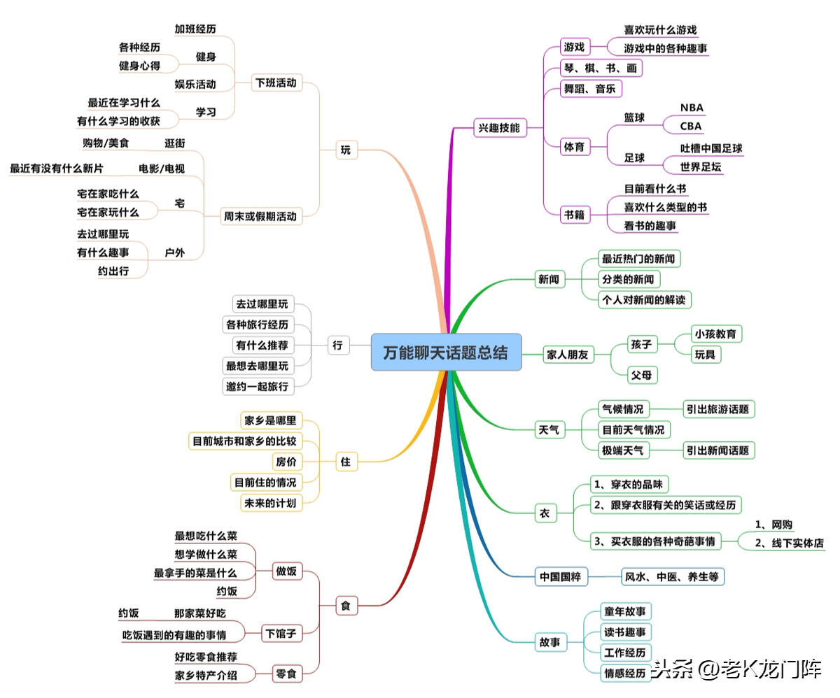 天气变热了/凉快了,今天好冷啊,天气好糟糕啊,希望明天出个太阳吧之类的。如今,又多了一个就是空气,也是进入了高频的话题。这个话题虽然平淡,但是可以很好的进行延伸,比如你们在抱怨今天糟糕的天气,你就可以引导聊一聊气候好的地方,如昆明,描述一下昆明的气候和特点,说说你去昆明玩的场景和见识,等等。随着对天气的谈论,逐渐引出一些更加自然而无伤大雅的话题。这种方法十分简单方便。