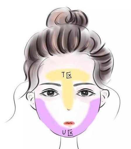 为了更好地分辨皮肤类型,我们可以先把面部分成T区和U区。