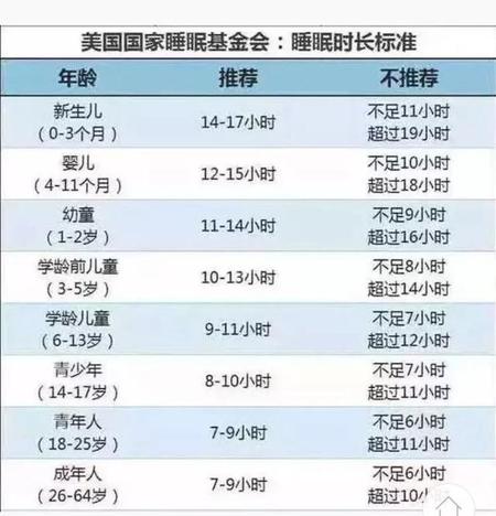 首先不同年龄段的宝宝睡眠时间是不同的,可以参见美国睡眠基金会中的推荐时长,。