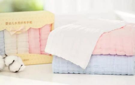 基本上搞对折的时候会买一些纱布浴巾、口水巾等,拿到手会感觉很硬,但越洗越软。