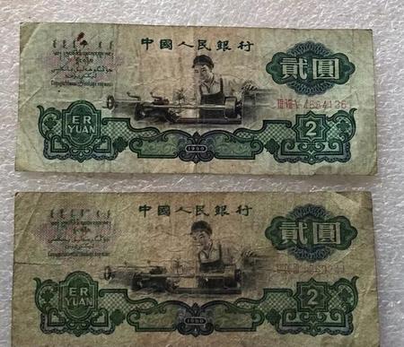 再看看这第三套人民币里的二元车工,这是以前的人民币吧,就是图中这样已经很旧的样子(行话称品相),也可值个几百元,难道您还会认为它们无用吗?