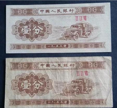 你好!我是青山飞鸟艺术,关于一分钱的钱币目前已经是已经退出了流通领域了,而且退出流通领域的钱币都具有收藏价值不管价值高低我们都可以去了解一下,关于53年的纸币有两种该年份的1分纸币有两个版本,分别是(1)长号版(罗马字加阿拉伯数字),这种版本的1分纸币一张都300多元人民币;(2)短号版(只有罗马字,无阿拉伯数字),这个版本较便宜,几乎没有什么收藏价值。我们从这里也可以很容易看到尽管是同一时期发行的钱币它们的价值也有天壤之别,所以在收藏钱币的时候我们应该需要认真的去了解一下它们当时的发行量和它们的设计理念,这样不仅可以增加你收藏知识还可以避免一些不必要的弯路。还有一些类似的一分纸币也是值得我们注意的。