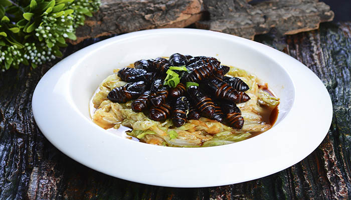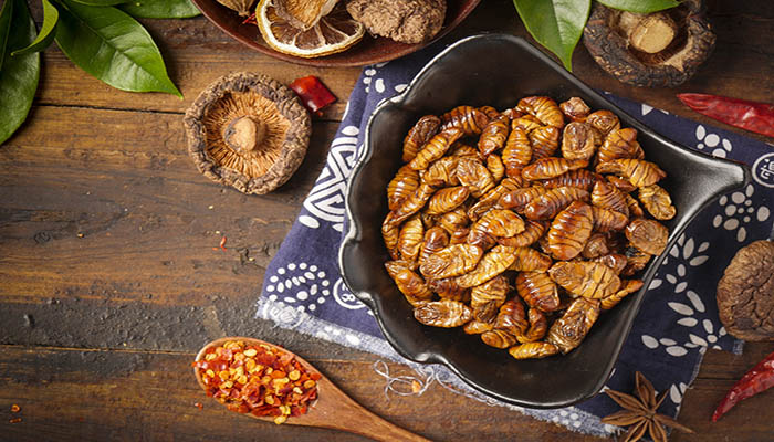 蚕蛹具有极高的营养价值,含有丰富的蛋白质(鲜蚕蛹含粗蛋白占51%)、脂肪酸(粗脂肪占29%)、维生素(包括维生素A、维生素B2、维生素D及麦角甾醇等)。蚕蛹的蛋白质含量在50%以上,远高于一般食品,而且蛋白质中的必需氨基酸种类齐全。蚕蛹蛋白质由18种氨基酸组成,其中人体必需的8种氨基酸含量很高。蚕蛹中的这8种人体必需的氨基酸含量大约是猪肉的2倍、鸡蛋的4倍、牛奶的10倍,且营养均衡、比例适当,是一种优质的昆虫蛋白质。