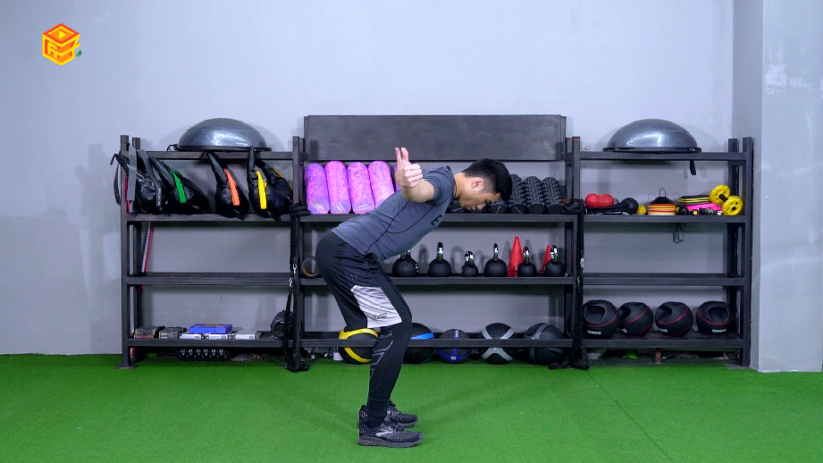 膝盖微曲,然后大拇指朝上,上下摆动;