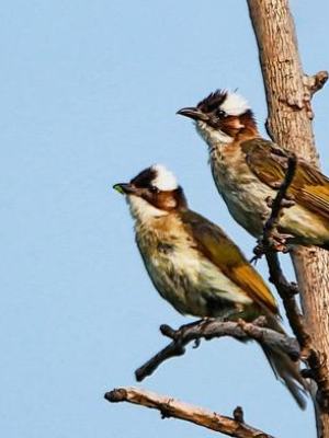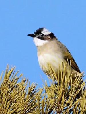 白头翁,性活泼,结群于果树上活动。有时从栖处飞行捕食。是长江以南寓意广大地区常见的一种鸟,多活动于丘陵或平原的树本灌丛中母,也见于针叶林里。杂食性对照鸟叫声,既食动物性物质,也食植物性物质,白头翁鸟是几级保护动物,同时食性还随季节而异。春夏两季以动物性食物为主,秋冬季则以植物性食料为主,也吃一部分浆果,如樱桃、葡萄等。