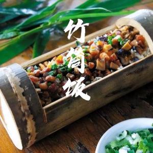 竹筒饭用山兰稻“香米”配肉类为原料,放进新鲜的粉竹或山竹锯成的竹筒中,加适量的水,再用香蕉叶将竹筒口堵严,炭火中绿竹烤焦即可。竹筒饭的煮法颇具有野炊特点,即砍下一节竹筒 ,装进适量的山兰米和水,放在火堆中烤熟,当竹筒表层烧焦时,饭就熟了。劈开竹筒,米饭被竹膜所包,香软可口,有香竹之清香和米饭之芬芳。