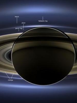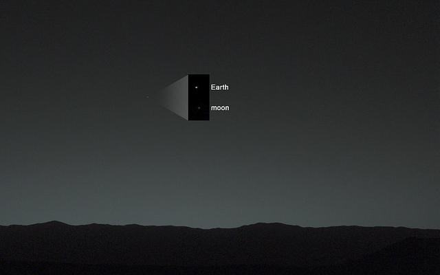 土星航天员环后面的长的地球。看到我们在机要右下角了吗?火星和金星在左上角,地球离太空多长的距离。2013年7月19日卡西尼号飞船拍摄的照片。