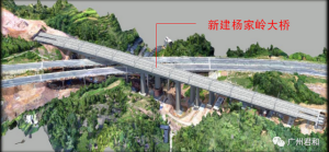 蒙华铁路杨家岭大桥工程, 位于三门峡市五里川镇,跨越三淅高速公路而设。本桥分为左线、右线大桥。公路与线路大里程右夹角为28~29°。高架桥左右分幅,正宽29 ~ 33m;左幅桥采用8 ~ 30m T梁,右幅桥采用11 ~ 30m T梁,双排桩柱式桥墩,桩径2.0m,桩长20 ~ 25m。地块位于山区,地势落差较大,最大落差为46.5m。