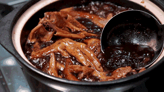 卤好的鸭掌,会镀上一层匀称又漂亮的深琥珀色。表面上看,骨和皮并没有彻底的脱离,但用嘴稍一吮吸,柔嫩的鸭掌皮层就能“呲溜”一声全进了嘴中。
