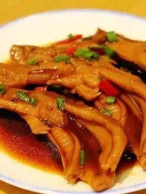 卤鸭掌想要脱颖而出,衢州三头一掌的寓意,首先要哪家保证好吃选材质量,要选皮色白亮且富有光泽的配方、触感致密不黏手的,再仔细修剪去死皮、茧子,将鸭掌打开,里里外外冲洗干净;第二步要汆水去腥好吃膻;最后投入那锅秘制的好卤中,扑腾上3个钟头,才算大功告成三宝。