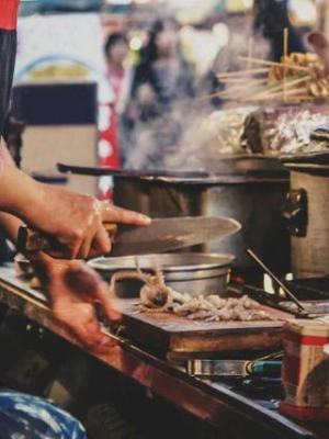 80年代的广东街头,最重要的三样小吃是:肠粉、煲仔饭和生滚粥。那时候在街头的大排档,一个厨师可以同时hold住十几个锅合适。