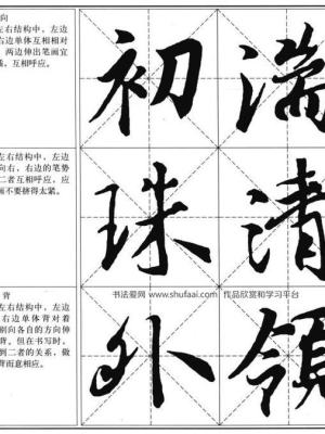 在左右结构中,左边单体与右边单体互相相刘称为向。两边伸出笔画宜互相穿插,互相呼应。在左右结构中,左边的笔势向右,右边的笔势向左,二者互相呼应,应注意笔画不要挤得太紧。