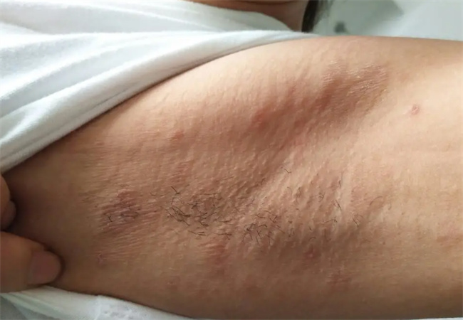 湿疹是较为常见的症状,患者腋下潮湿为细菌提供繁殖环境,可伴随慢性湿疹出现患者发现腋下瘙痒,非常想抓挠伴随脱皮白色鳞屑,此刻和可去医院做相关检查,若瘙痒症状比较明显,需要在医生的指导下使用外敷药物进行缓解,在生活中饮食需要多加注意,建议饮食清淡营养均衡的收入,多吃一些新鲜的瓜果蔬菜,避免湿疹症状较为严重而引发其他问题。