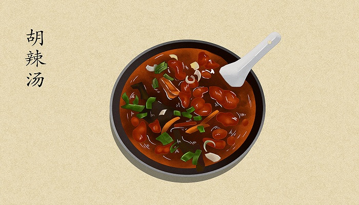 胡椒,辣椒,牛肉粒,骨汤,粉芡,细粉条,黄花菜,花生,豆腐皮,木耳等。据专家考证,胡辣汤的祖宗应该是酸辣汤和肉粥,按《太平惠民和剂局方》在宋代流传甚广来看,在食物里加入辛温香燥药物,估计是当时的社会潮流,因此胡辣汤在这两种食物的基础上改进而成的。取酸辣汤的醒酒、消食的功用,加入肉类大概是为了适应更多层次人众的口味和补气补虚,再辅以生姜、胡椒、八角、肉桂等调料辛香行气,舒肝醒脾。故此河南胡辣汤的主要口味是酸和辣。北宋定都开封,商品经济有了长足发展,民间小吃也随之兴盛,花样百出。