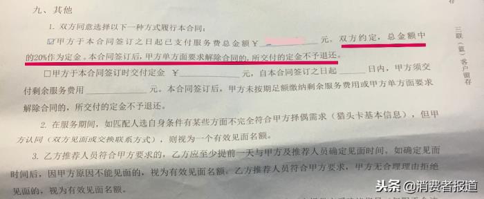李女士回家后在网上发现相亲平台有很多负面消息,第二天申请退款却被告知按合同要扣20%违约金,“退款不成便试试服务,没想到约见的6个相亲对象都与自己当初填写的要求不一样。”