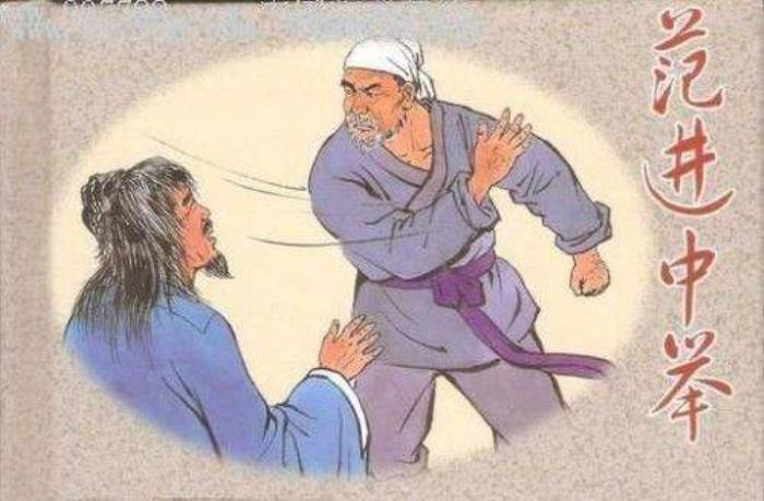 范进中举前没有生活来源,在以杀猪为营生的丈人胡屠户面前,疲软得抬不起头来,没有一点做人的骨气与尊严。在这个小手工业者的眼里,范进是个“烂忠厚没有用的人”,表现出世俗人对未科举成名的知识者做人价值的极大轻蔑与嘲讽。范进中了秀才,胡屠户认为是宗师看见范进年岁大,不过意,才舍与范进的,并且认为范进想中举是癞蛤蟆想天鹅屁吃。其言语之刻毒如斯。范进要赴省城赶考,想向丈人谋求点资助,不仅没得到分文,反而被“一顿夹七夹八”骂的“摸门不着”,其吝啬浅见如此。