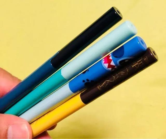 颜色也很容易就能从笔帽的装饰上区分出来。