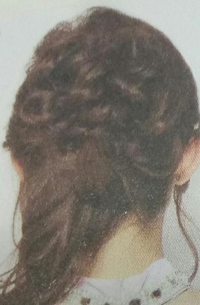 从左侧的长头发中,取两小束头发,交错扭转,缠绕成两股辫。