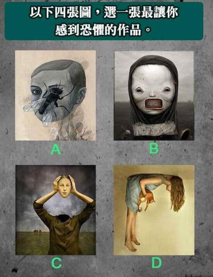 20、诡异图像测试你的防备心理:四张图,选一张最让你感到恐惧的作品。