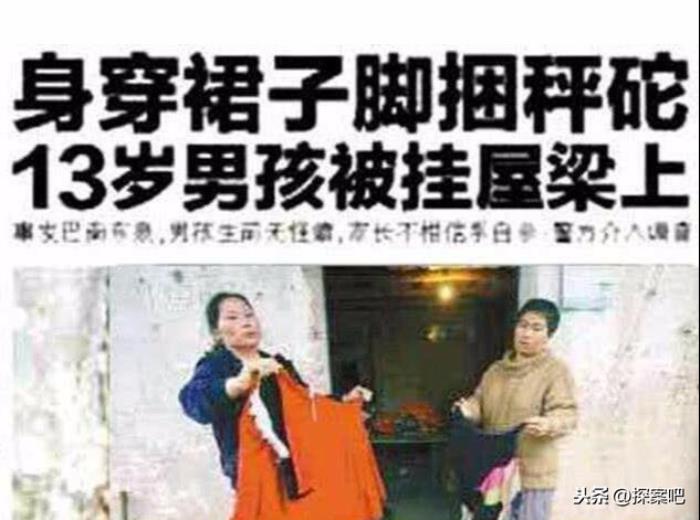 红衣男孩上吊死亡,姿势奇怪!2009年,一名13岁的男孩身穿红衣吊死在自己屋梁上。双手双脚被仅仅的绑着,脚上还绑着一个硕大的秤砣,身上穿着死者表姐的衣服。当时此事一出,很多人都怀疑是道士做法,用邪恶的道术害死了这个小男孩。但是显然这是不可能的。那真相到底是怎样的呢?