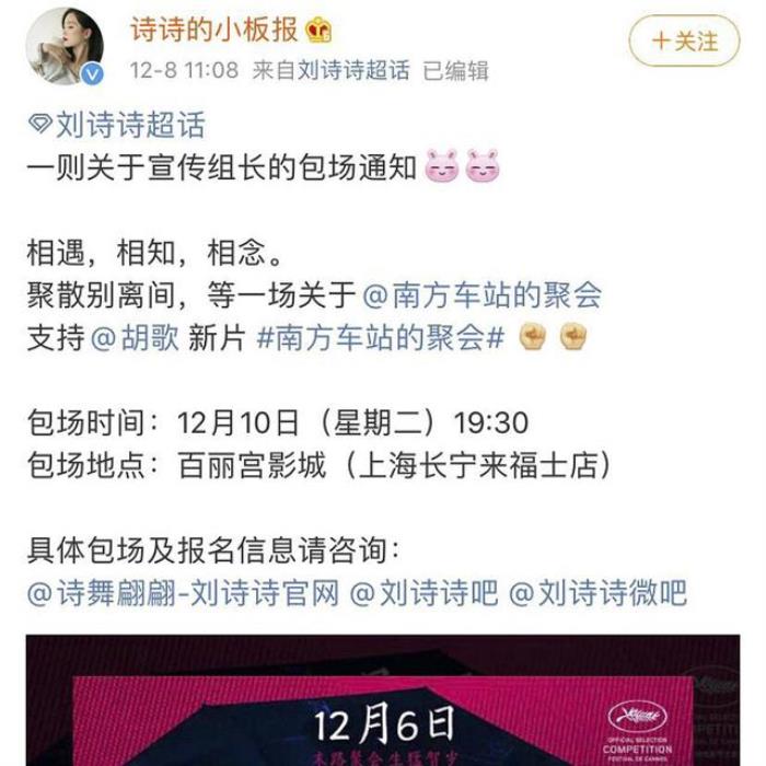 令人感动的是,挚友刘诗诗与袁弘都相继为胡歌新电影包场,也引得不少唐人粉丝惊喜感叹:他们是永远的唐人三宝!