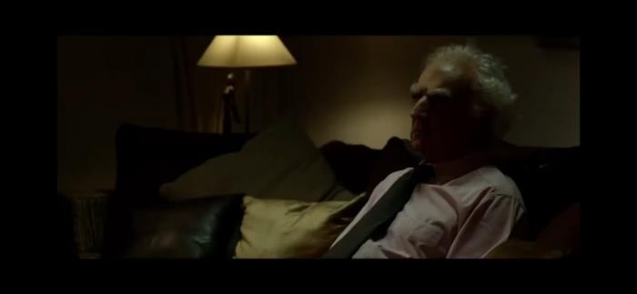 整部短片以声音入场,有音乐声和主角的独白声,而第一个出现在画面里的人物则是一个侧身坐在沙发上的老年人。